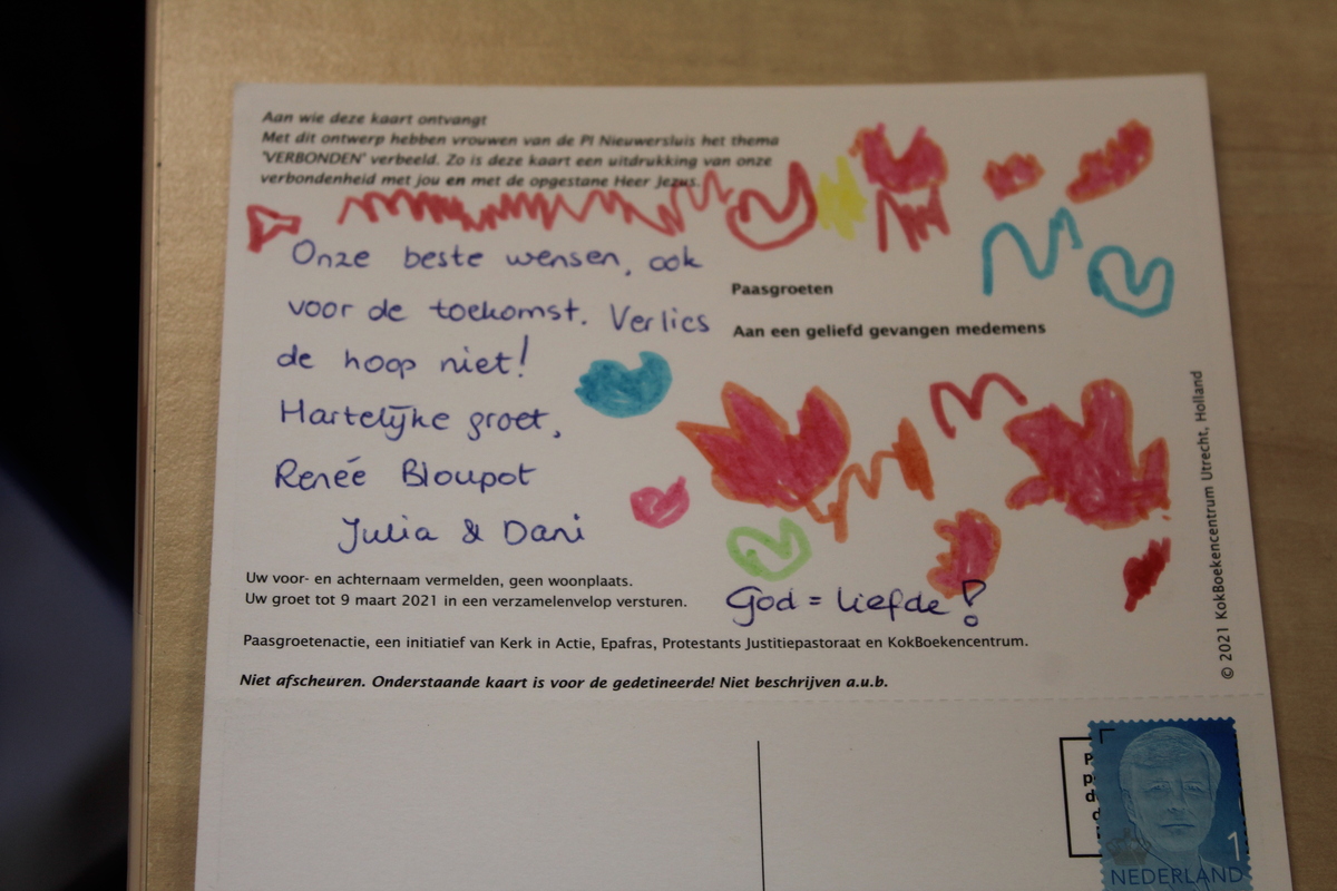 Vanuit de Protestantse Kerk in Nederland sturen gemeenteleden ook dit jaar paasgroetenkaarten aan gedetineerden in Nederland. Ook onze gemeente doet mee aan de Paasgroetenactie. Op zondag 22 februari delen we de kaarten uit. Tijdens de dienst krijgt u de gelegenheid om aan de bovenkant een wens , een bede of een groet te schrijven. U mag ondertekenen met uw naam, maar dat is niet verplicht. Na de dienst mag u de kaart weer inleveren, wij sturen ze op naar de landelijke PKN. Zij verdelen de kaarten naar de gedetineerden. U mag die zondag wel een postzegel meenemen en erop plakken. Voor gedetineerden is het bemoedigend als ze een kaart ontvangen, zeker als daar ook iets persoonlijks op staat. Ook al weet u niet precies wie deze kaart ontvangt, u mag ervan overtuigd zijn dat een bemoedigende groet hen goed doet. Het is altijd weer een feestelijke gebeurtenis als de kaarten in de kerkdienst rond Pasen in de gevangenissen worden uitgedeeld. We hopen dat velen van u meedoen met deze actie! Alvast bedankt daarvoor! ZWO commissie ![]() |